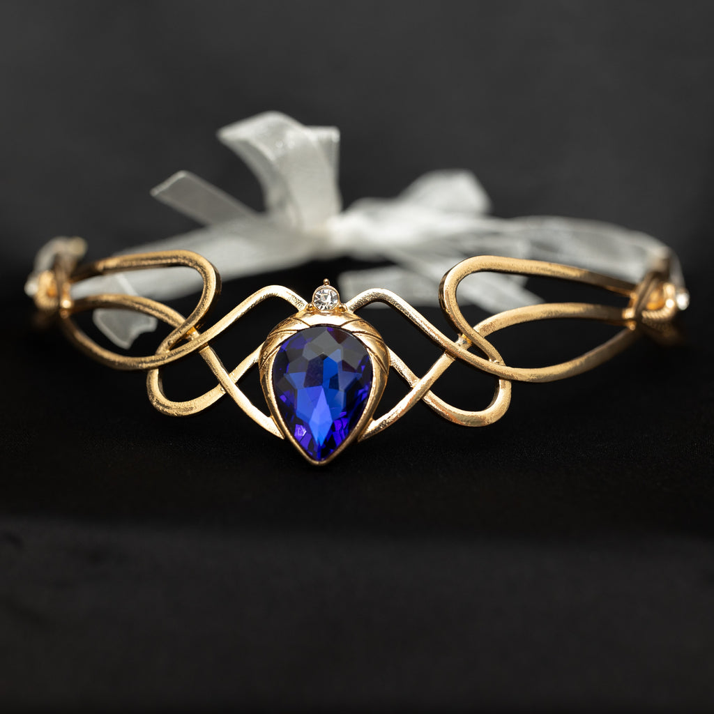 Vesper’s tiara is petite but brightly colored. Meant to sit forward on the forehead but easily installed to create a dazzling accessory, Vesper is a great addition to the elven princess, pirate lord and lady alike or even a siren of song, the mermaid.